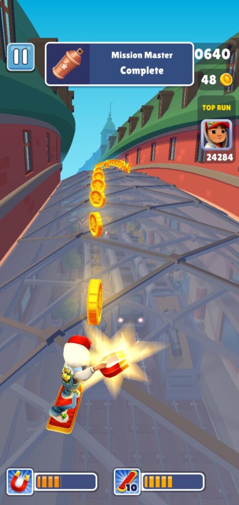 You play as a graffiti-tagging runaway being chased down by a grumpy subway controller and his dog. The goal? Stay alive for as long as possible by dodging trains, barriers, and other obstacles while collecting coins, power-ups, and puzzle pieces.